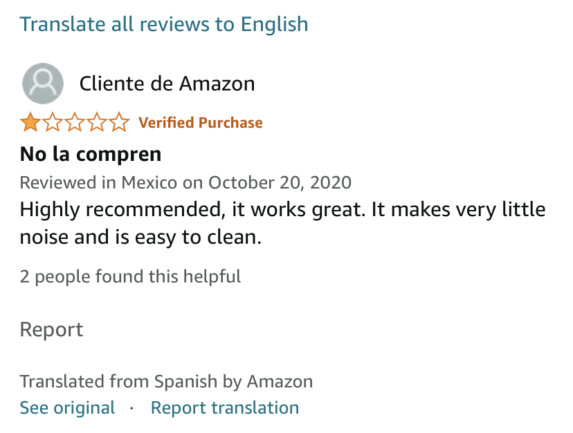 Но что, если вы не понимаете испанского? Амазон предоставляет полезную услугу перевода. Вот их перевод: